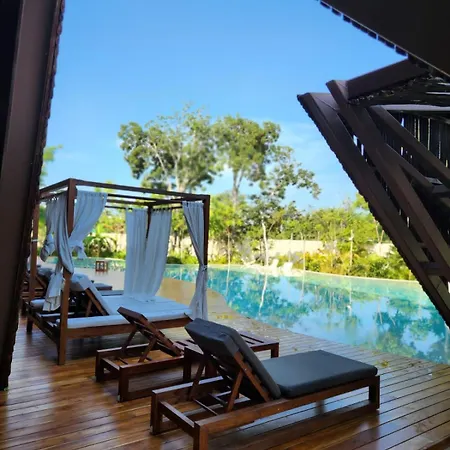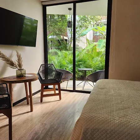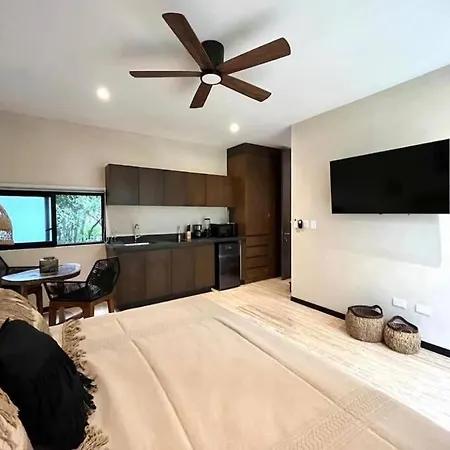 Along with self-catering amenities like a fully furnished kitchen, New Suite Deluxe Tulum Ophelia Community Living also offers an outdoor dining area. Well-connected to many sights, New Suite Deluxe Tulum Ophelia Community Living is in the immediate vicinity of Colectivos a Bacalar & Chetumal bus station. This apartment features a terrace and views of the garden from it.