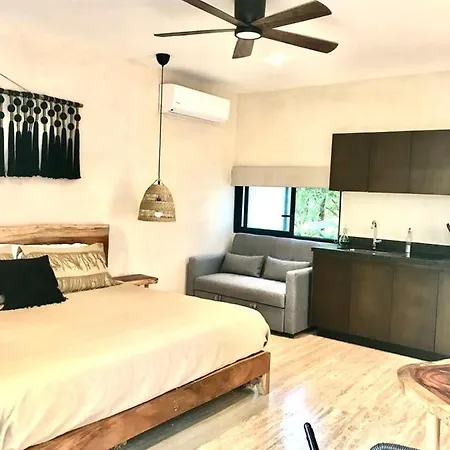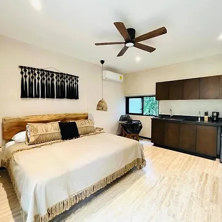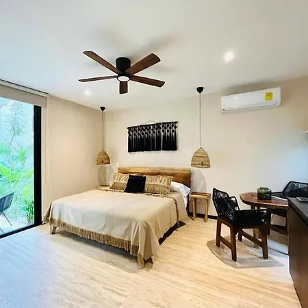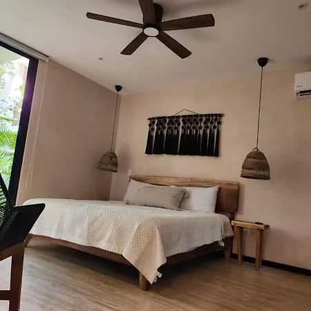The 20 m² apartment is located in the Zama district, 51-minute drive from Aeropuerto de Playa del Carmen airport. The Tulum Archaeological Site is nearly a 10-minute ride from the accommodation.